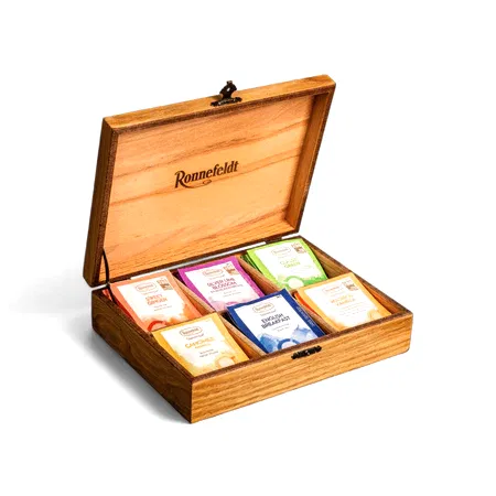 Teavelope çay çeşitlerini daha şık sunmak için 6 bölmeli ahşap kapaklı ünite kutu.